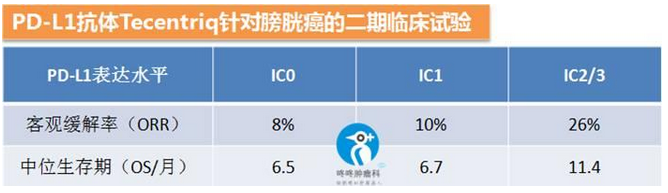在已經批準的膀胱癌中,也顯示出來PD-L1表達量越高,有效率越高的趨勢: