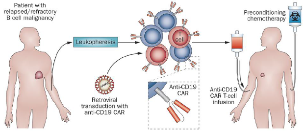 針對(duì)CD19、CD20和CD22為靶抗原的CAR-T細(xì)胞治療B細(xì)胞惡性腫瘤研究較多, 原因就是即便損傷了成熟B細(xì)胞, 也只是暫時(shí)的、可恢復(fù)的。美國(guó)賓州Hershey女孩 ,Emily Whitehead 患有急性淋巴細(xì)胞白血病(ALL),治療靶點(diǎn)為CD19。