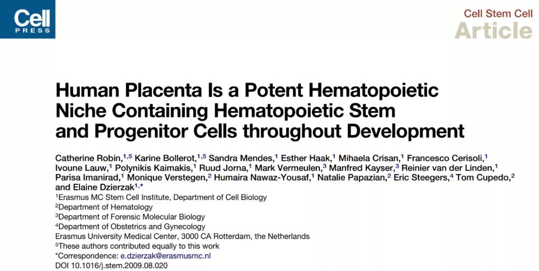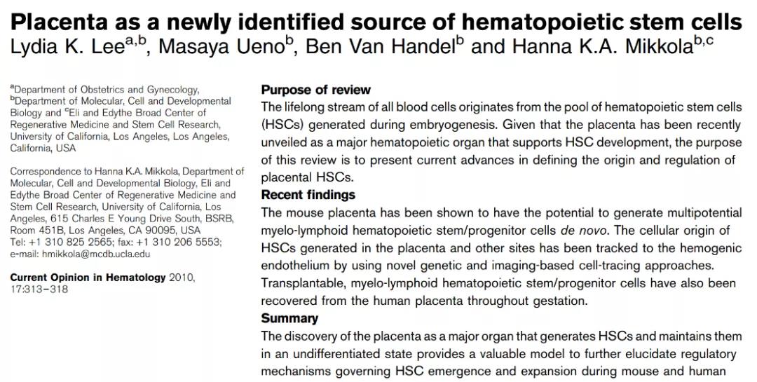 2015:胎盤造血干細胞較臍帶血和胎兒肝臟來源的造血干細胞具有優勢