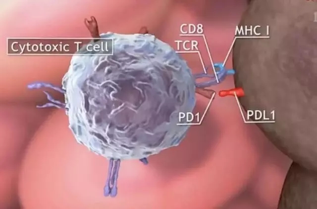 狡猾的腫瘤君會通過產生一些抑制性物質來麻痹免疫系統,甚至有一些腫瘤還會有特殊武器,它的細胞膜上有一種能夠抵抗免疫細胞的分子叫PDL-1,腫瘤會通過PDL-1逐步誘導殺傷性細胞表達叫PD-1的分子,兩者一旦結合就啟動免疫細胞的自殺機制,讓其失去了對腫瘤的攻擊力。這就好比汽車上的剎車,簡單來說就是腫瘤細胞用PDL-1踩PD-1的剎車。