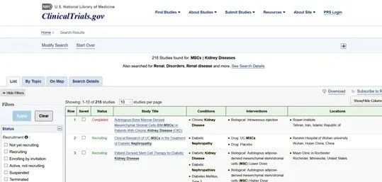 截止目前為止,美國(guó)國(guó)立衛(wèi)生數(shù)據(jù)庫(ClinicalTrials.gov)收錄的間充質(zhì)干細(xì)胞治療腎臟疾病的臨床試驗(yàn)有兩百多項(xiàng)。