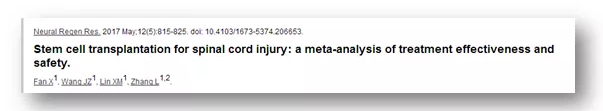 發(fā)表在《Neural Regen Res.》雜志上的論文分析了10項(xiàng)囊括干細(xì)胞治療377名脊髓損傷患者的研究,結(jié)果表明,干細(xì)胞移植治療脊髓損傷可以改善感覺功能和膀胱功能,同時(shí)具有修復(fù)的功能,可以初步認(rèn)為是有效的。