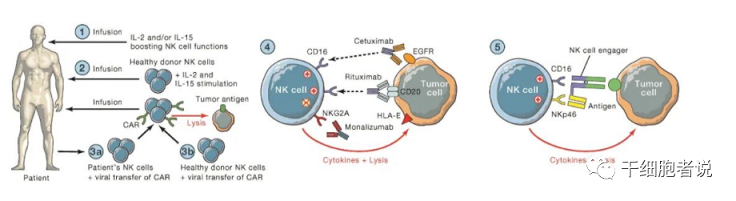 § 活化的NK細胞:將健康捐贈者的NK細胞在體外以IL-2和IL-15刺激后,再輸住到癌癥患者的血液中。