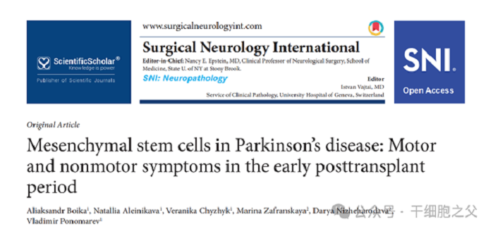 案例1:2018年,中國實用神經疾病雜志刊登了“神經干細胞移植治療帕金森的效果觀察”一文。文章中介紹了河南駐馬店中心醫院神經內二科對27例帕金森患者進行神經干細胞移植手術治療。